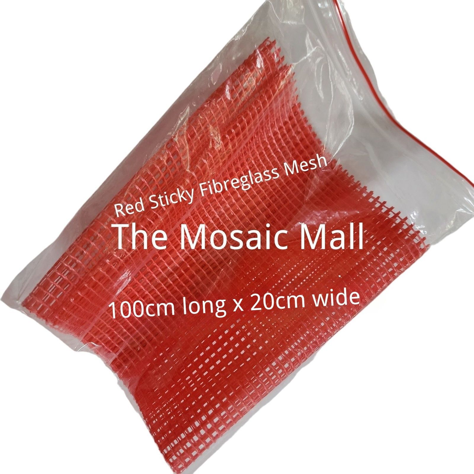 Red Fibreglass sticky mesh is a non-alkaline product that is commonly used in the creation of mosaics. It is a type of mesh that is coated with a sticky adhesive on one side, which allows it to securely hold individual tiles or tesserae in place while the mosaic is being created. Here are some key features of fibreglass sticky mesh: