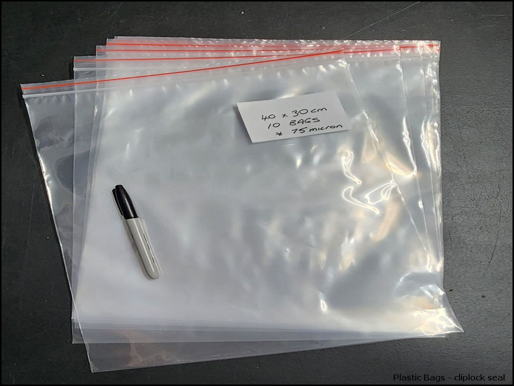 Plastic Bags for storage or glue dispensing. Handy to store tiles, tesserae, patterns. Convenient for the Mosaic On Mesh method - slide your pattern in the plastic bag, secure to hold in place, place mesh on top of the plastic. Check out the size range. Available in 40 or 75 micron plastic strength.